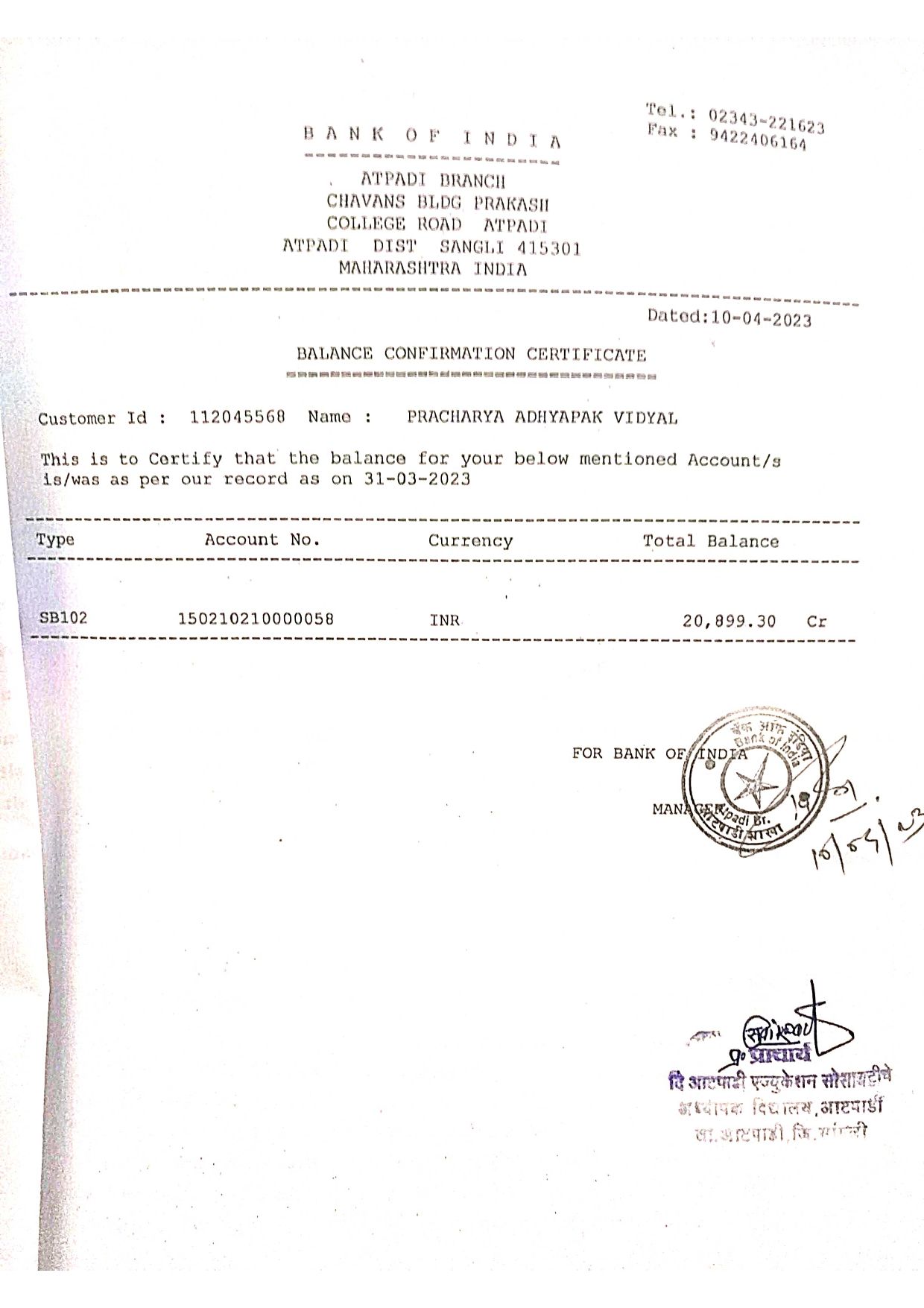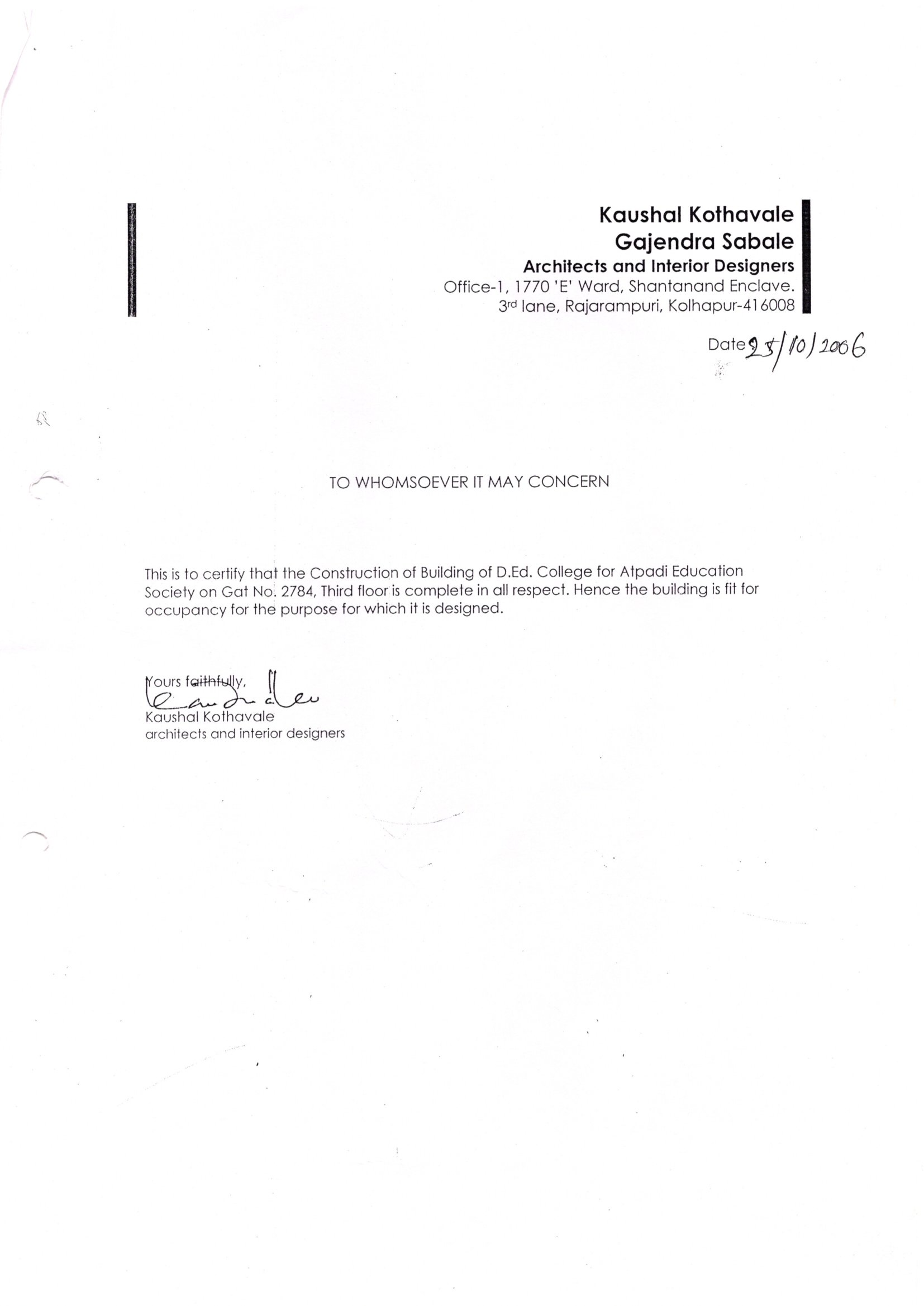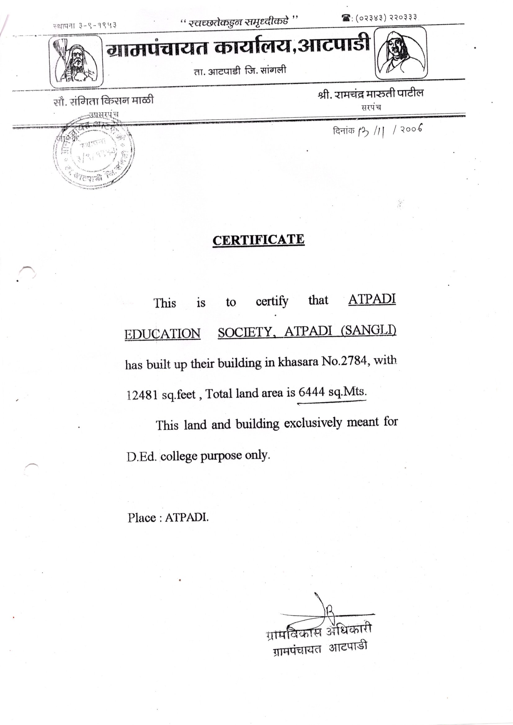 Atpadi Education Society Adhyapak Vidyalaya Plot. No.703 /B, Khasra No.2784 , Atpadi 415301 |