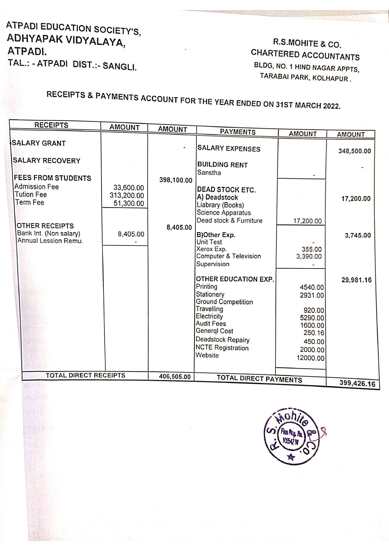 With the glorious journey of past 72 years The atpadi education society has stood firmly to uplift the education in every area. Science, arts, commerce, performing arts, teachers education sports, crafts and many more branches are delivering the future oriented knowledge and imparting students with life skills.