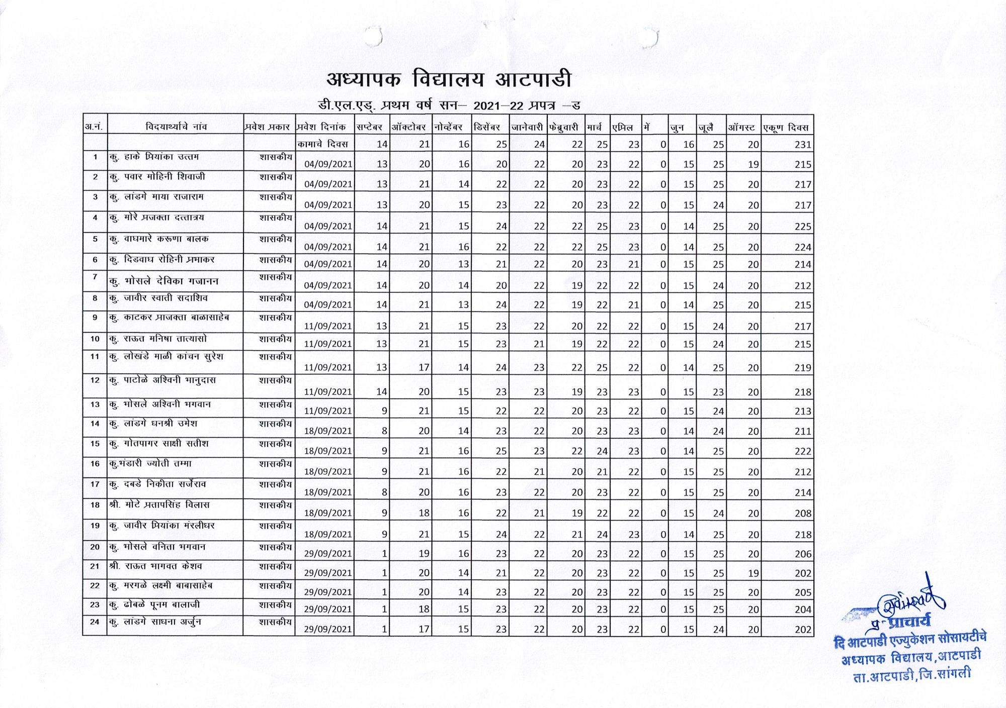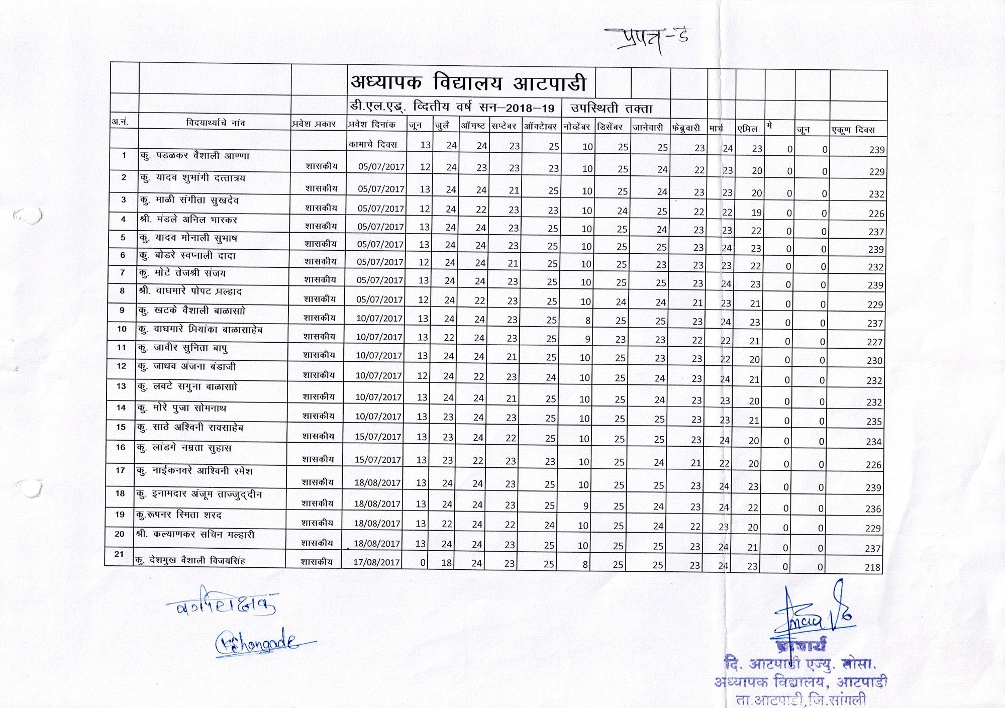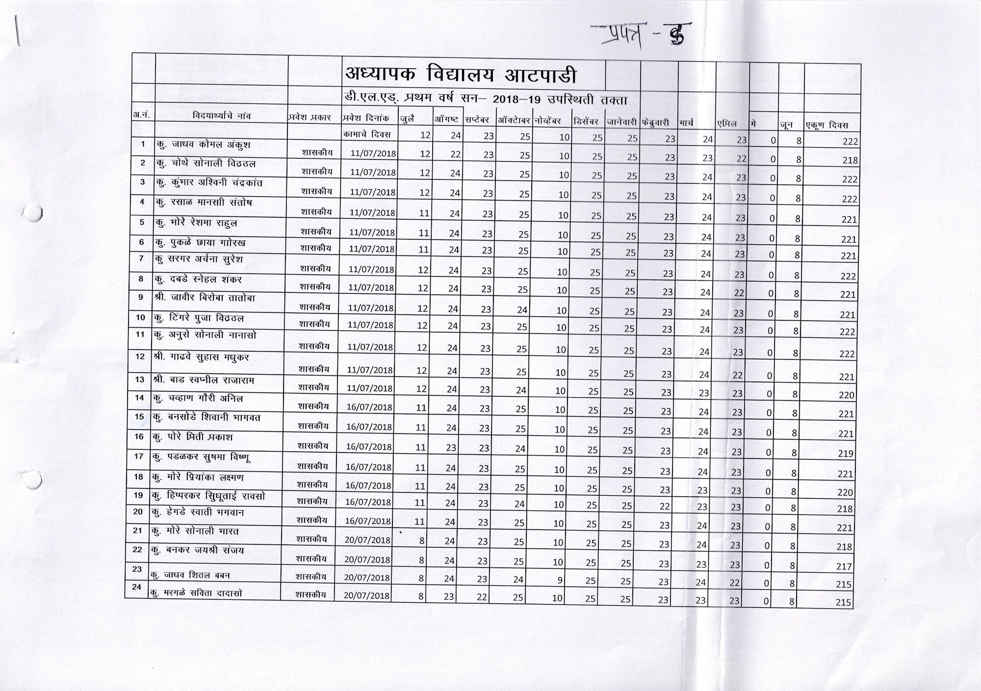Atpadi Education Society Adhyapak Vidyalaya Plot. No.703 /B, Khasra No.2784 , Atpadi 415301 |