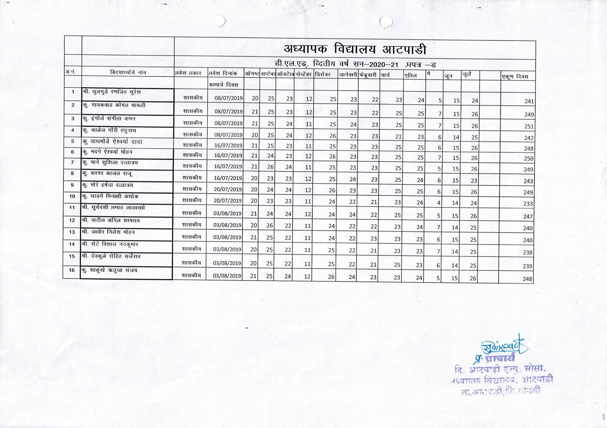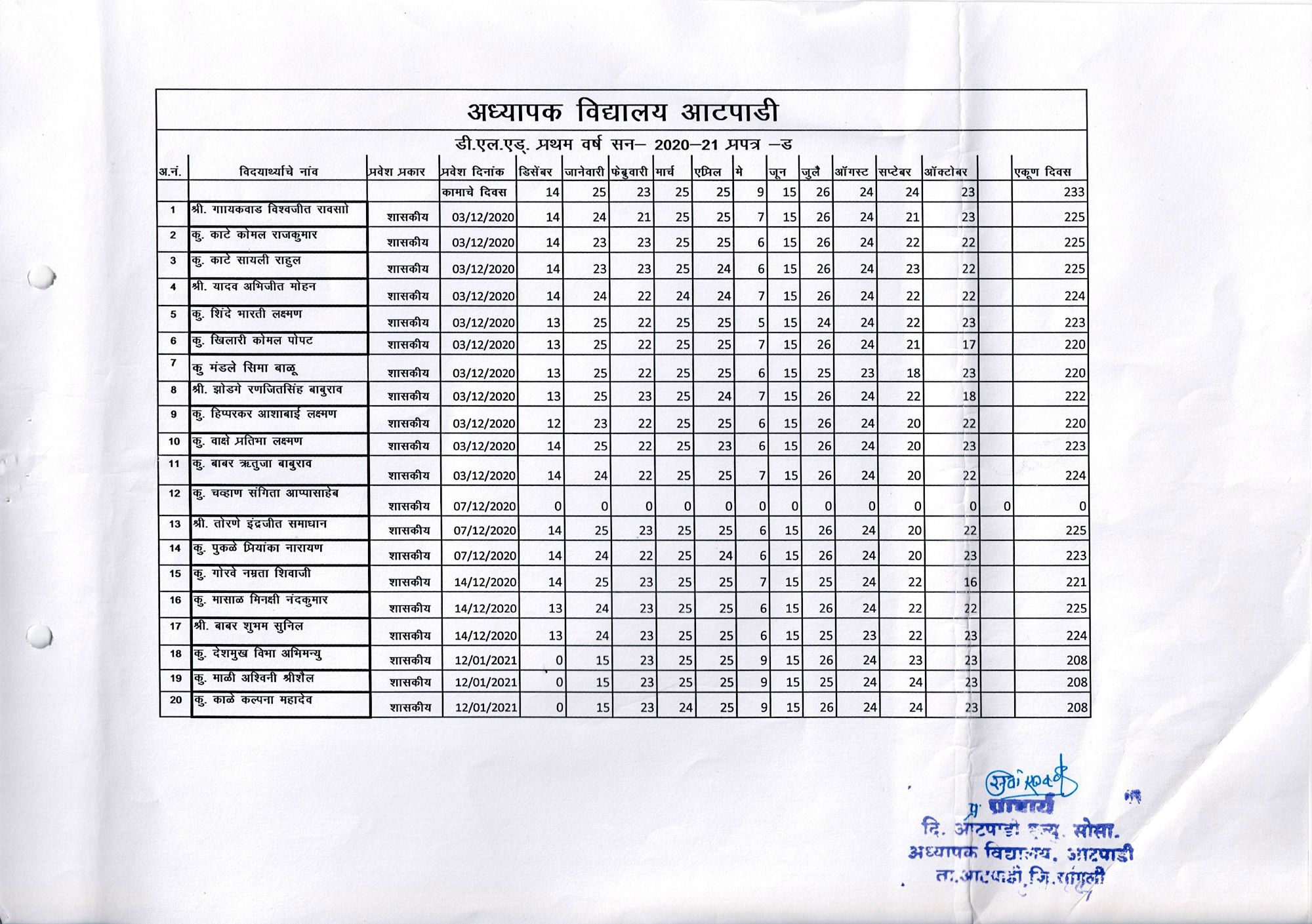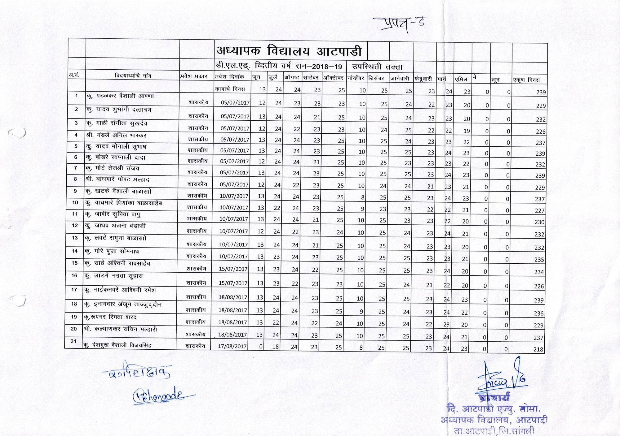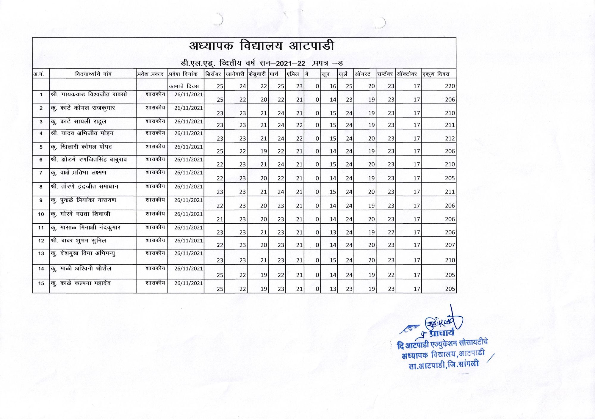 Atpadi Education Society Adhyapak Vidyalaya Plot. No.703 /B, Khasra No.2784 , Atpadi 415301 |