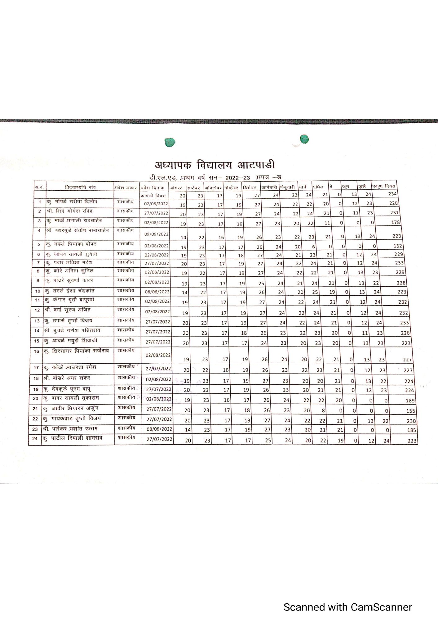 | 23 | KHARAT ARATI SANJAY | 01-01-2006 | SANJAY | LATIKA | FEMALE | S.C. | 0 | 0 | aniketkharat1124@gmail.com | |