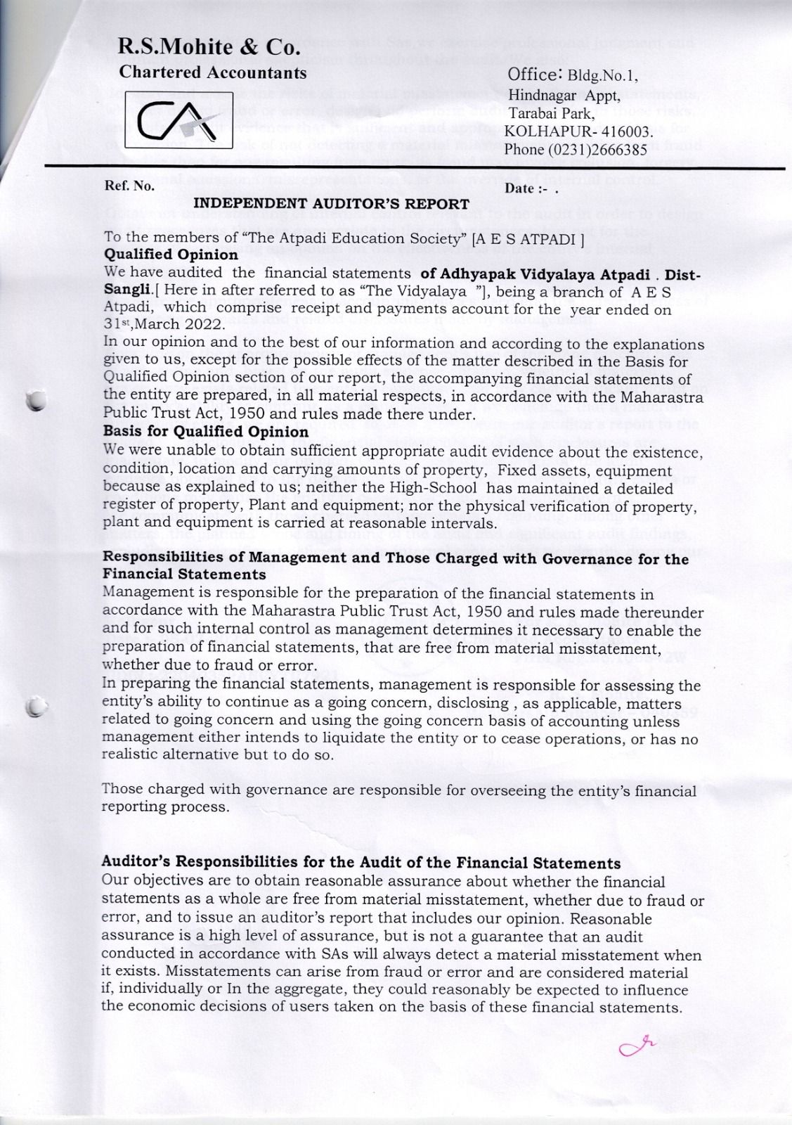 With the glorious journey of past 72 years The atpadi education society has stood firmly to uplift the education in every area. Science, arts, commerce, performing arts, teachers education sports, crafts and many more branches are delivering the future oriented knowledge and imparting students with life skills.